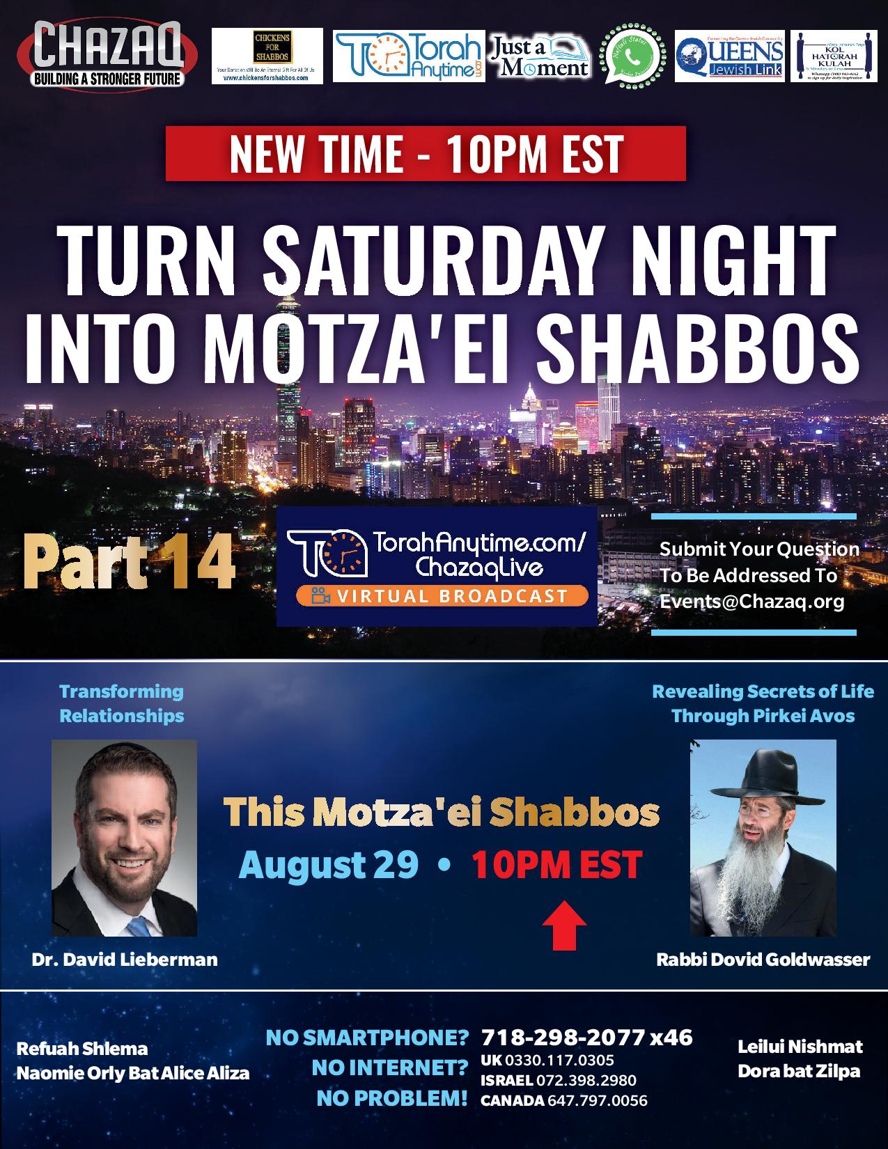 bc TURN SATURDAY NIGHT INTO MOTZA’EI SHABBOS