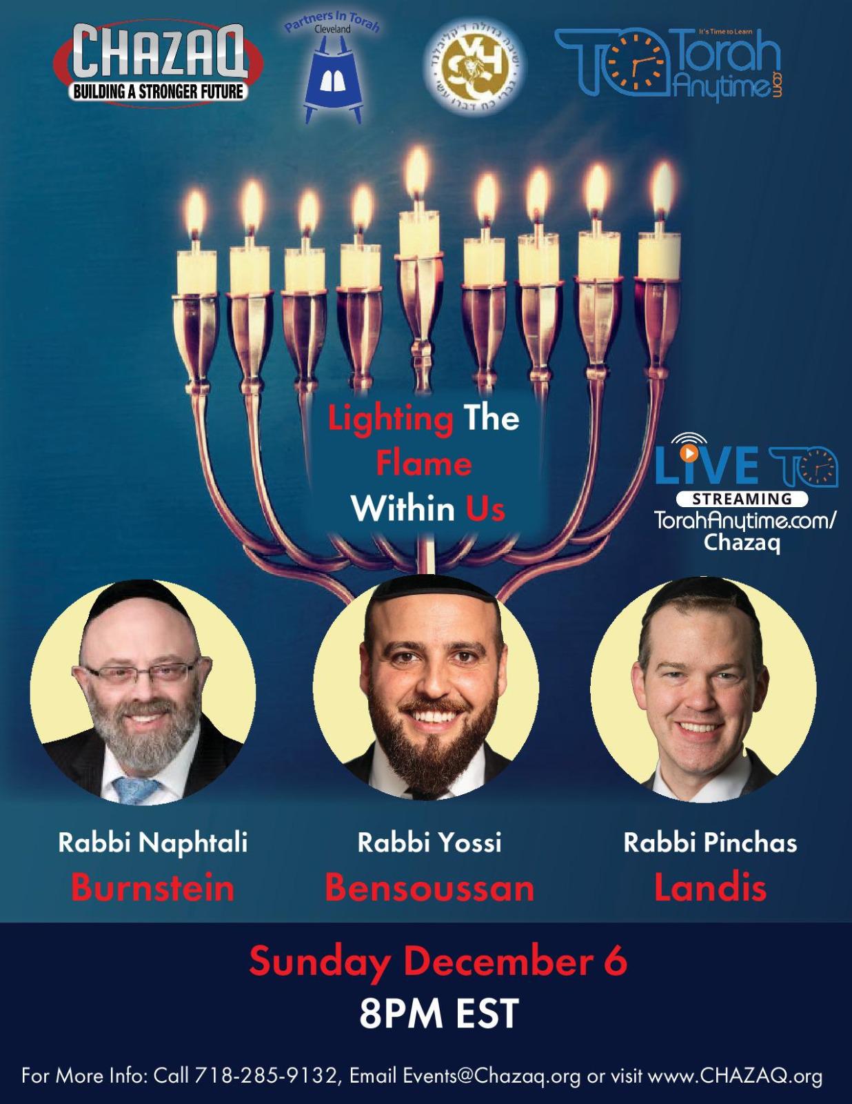 December 6th at 8pm – Live Streaming: TorahAnytime.com/Chazaq