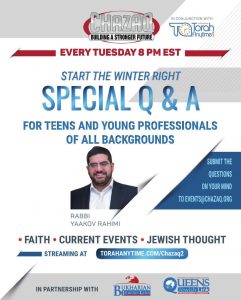 Start The Winter Right Special Q & A For Teens and Young Professionals Tuesdays @8pm with Rabbi Rahimi